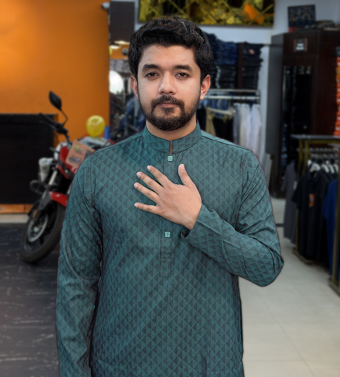 Prestige Pattern Urban Panjabi perfect blend of contemporary style and traditional charm. Expertly crafted from soft, breathable fabric, this Panjabi offers all-day comfort with a refined look. The subtle yet striking prestige pattern adds a modern urban edge, making it ideal for festive occasions, cultural events, casual outings, or daily wear.